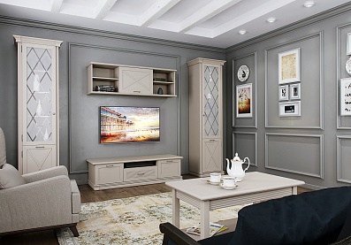 Тумба Кантри под телевизор с выдвижными ящиками Кашемир серый