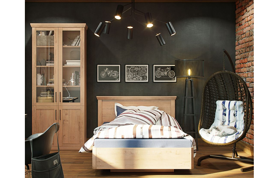 – описание: цвет дуб бунратти, размер спального места 120 х 200 см, стиль скандинавский, лофт, современный.