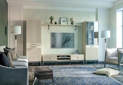 - Фасады: МДФ с фрезеровкой и без (панель ящика тумбы), окутаны плёнкой ПВХ;