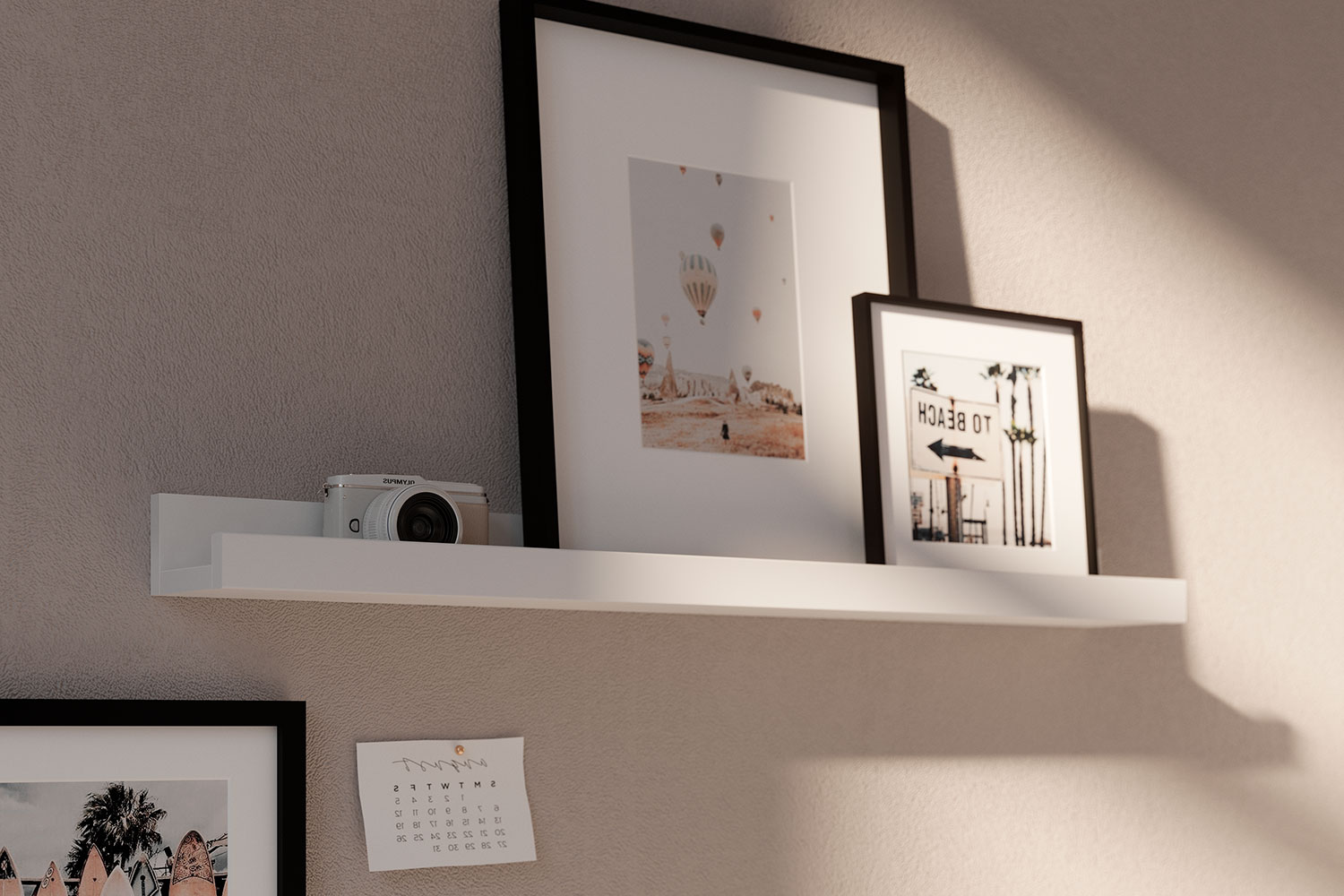 Длинная полка с ограничителем станет настоящей находкой для тех, кто любит рационально организовывать пространство. Нейтральный оттенок и минималистичный дизайн одинаково хорошо впишутся как в модный скандинавский интерьер, так и в классическую обстановку. Соединенные вместе несколько модулей образуют цельную галерею, из них также можно создать оригинальную настенную композицию.