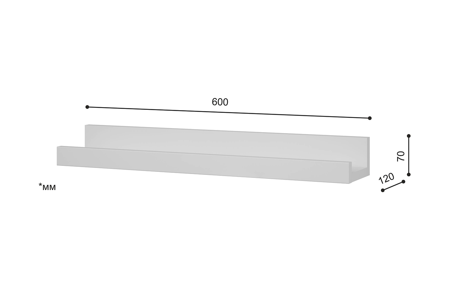 – описание: размер 7x60x12 см, назначение для кухни, для школьника, для прихожей, универсальное, для работы, для фоторамок и сувенирной продукции, для гостиной, для детской, для книг, для спальни, для дома, многоцелевой, стиль современный, скандинавский, цвет светло-серый.