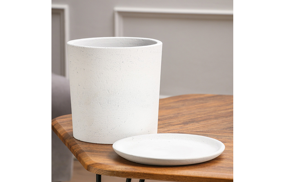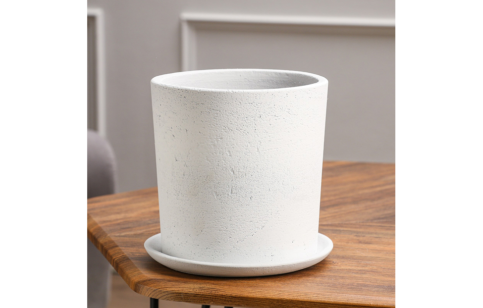 Купить Горшок цветочный "Цилиндр Ролл" бетон, белый, 4 л в интернет-магазине мебели «Ангстрем»