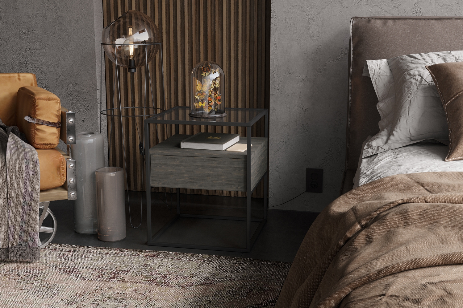 – описание: назначение для спальни, стиль лофт, цвет интра, размер 55.2x45x45 см.