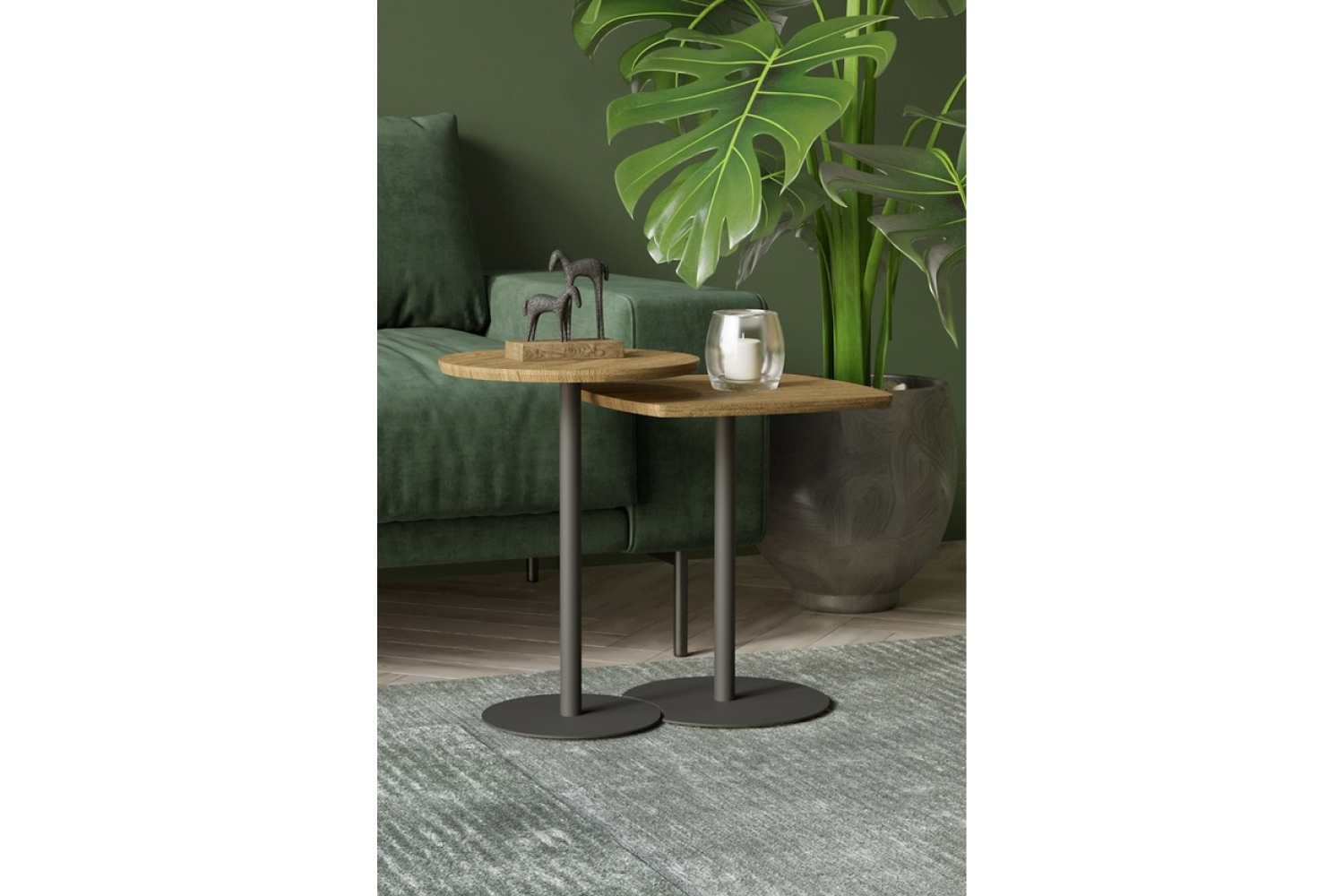 Комплект столов журнальных представляет собой гармоничную и функциональную композицию из двух столиков разной высоты и формы, расположенных один над другим. Дизайнерский прием — способность разместить данную модель любым комфортным способом или использовать каждый из них по отдельности. Центральная опора каждого из столиков оканчивается круглым основанием, изготовленным из прочного металла. Благодаря своей строгой элегантности и универсальности журнальные столики легко комбинируются с мебелью в современном стиле. В комплект входит вся необходимая фурнитура и удобная инструкция для сборки. Максимальная нагрузка до 5 кг.