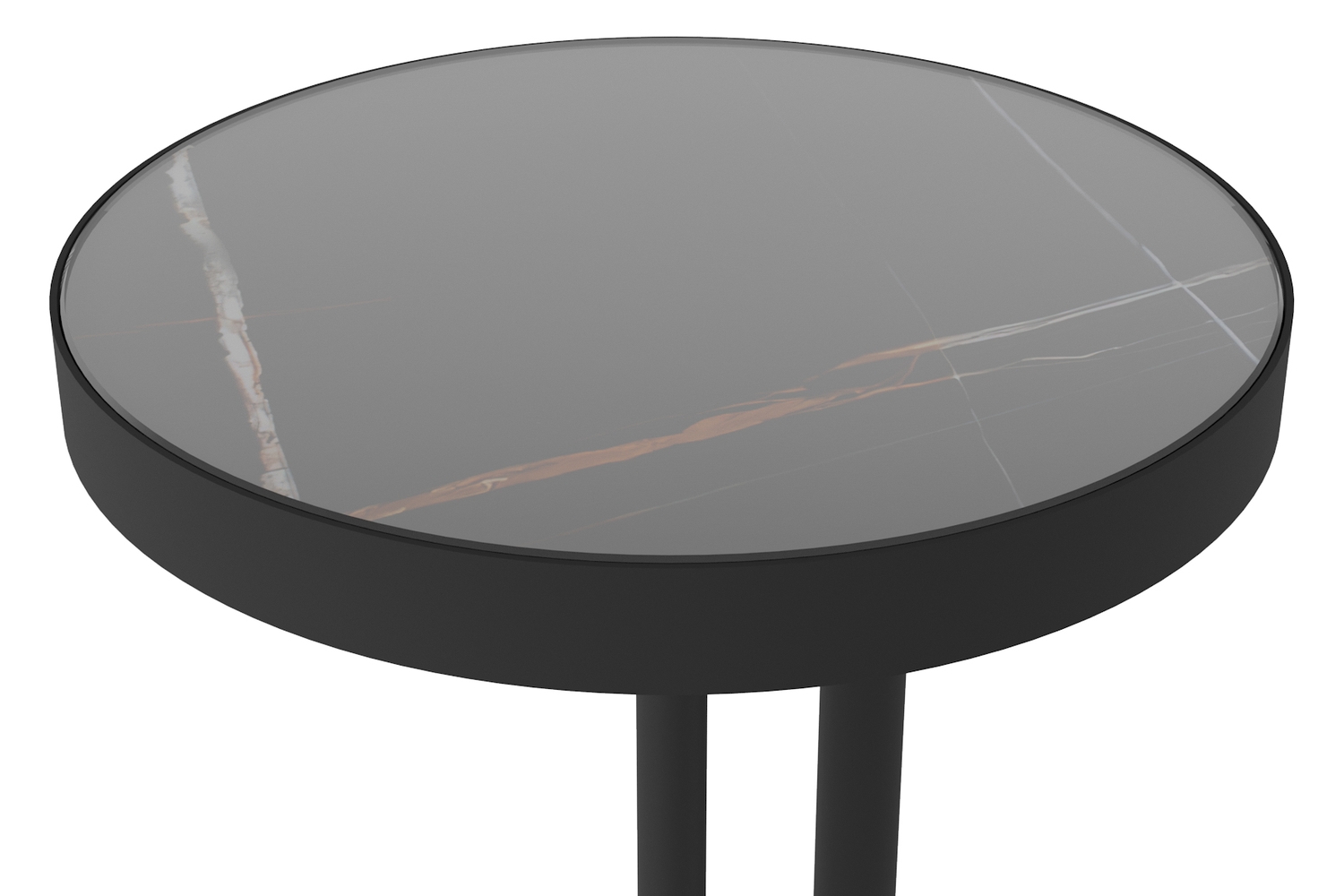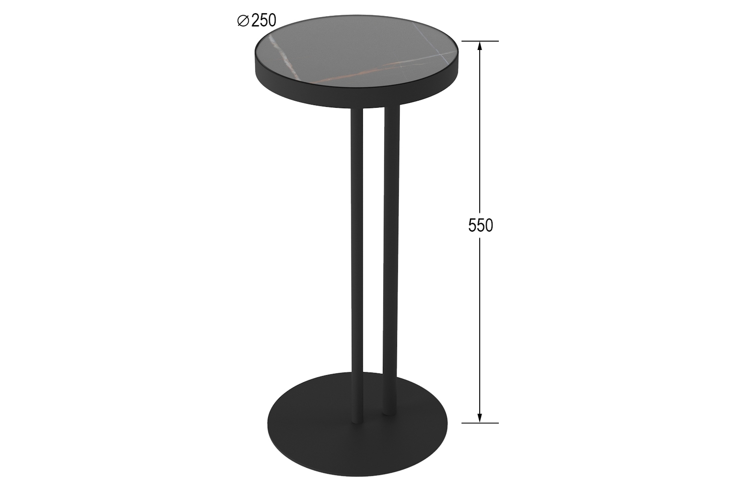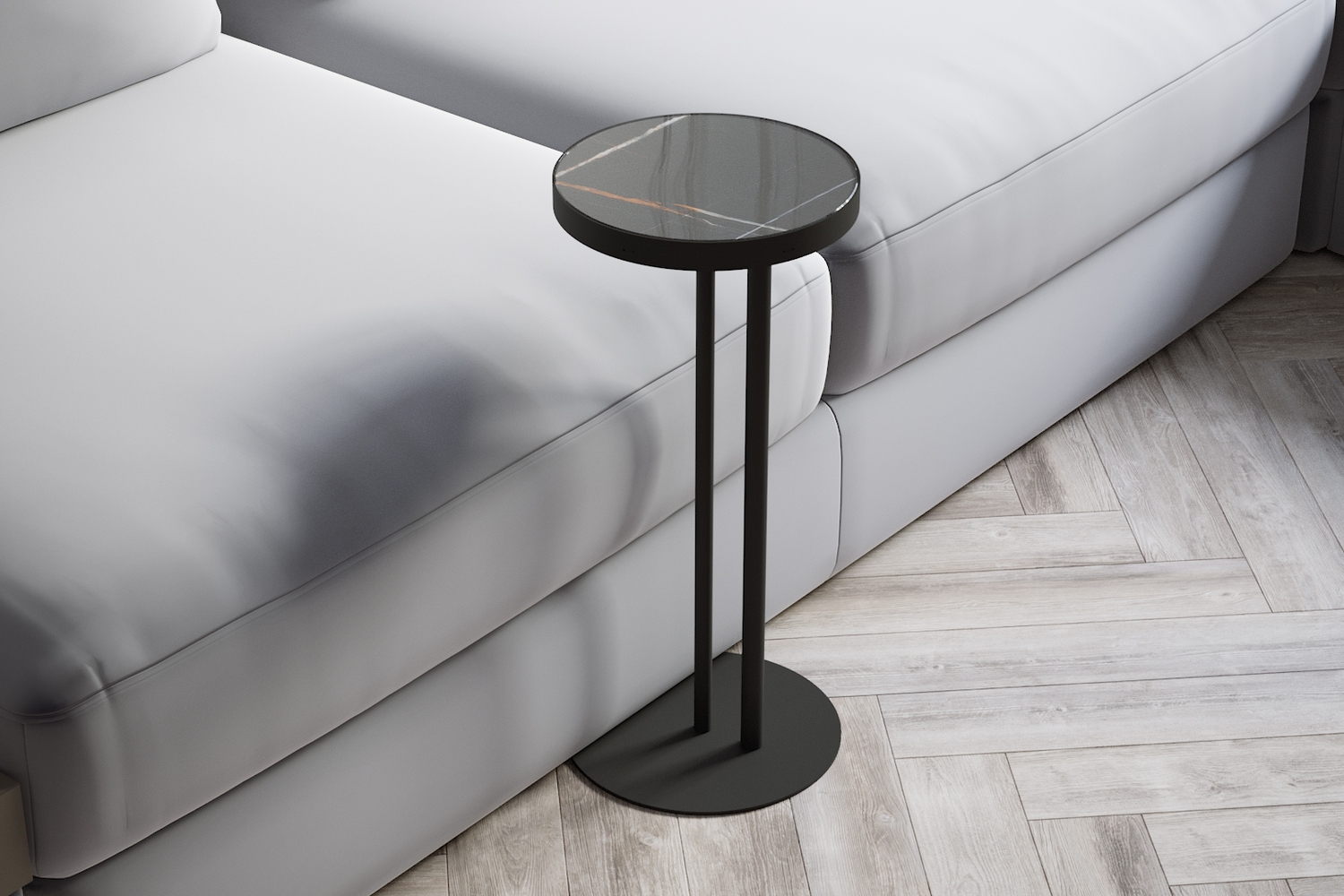 Стол журнальный «Хьюго» — элегантная в своей простоте модель в современном стиле. Основание и столешница соединены двумя опорами. За счет того, что они смещены к краю основания, столик можно установить вплотную с диваном или мягким креслом. Прочная конструкция столика полностью изготовлена из металла в черном цвете. Круглая столешница выполнена в стекле с УФ-печатью под мрамор.