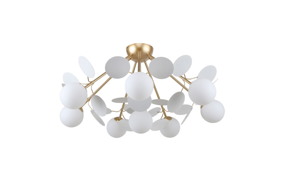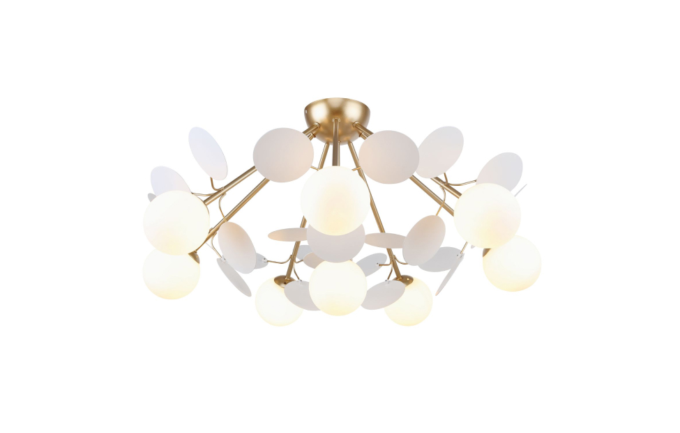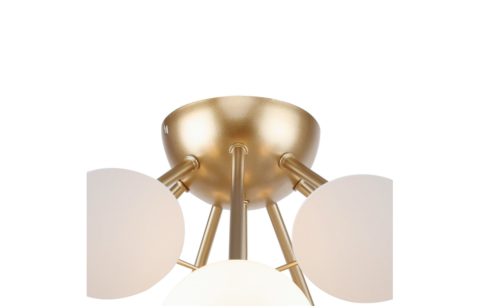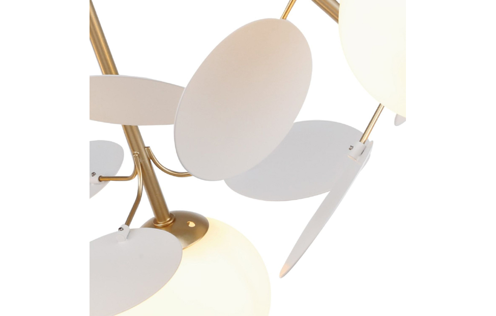 Коллекция Bliss – это гармоничное сочетание белого и золотого цветов, представляющее собой переосмысленную версию более разноцветной коллекции Multi Bliss. В основе обеих коллекций лежит одна флористическая идея, но Bliss утонченно акцентирует внимание на элегантности белого и роскоши золотого. Подойдет в интерьеры различной стилистики - от прованса до эклектики.. Металлический каркас золотого цвета, круглые стеклянные плафоны молочного цвета, декоративные круглые белые пластины, декоративные золотые шары, регулируемая высота.