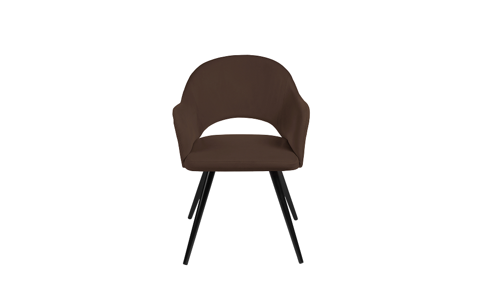 Стул-кресло Грейс с поворотным механизмом прекрасно впишется в любой интерьер и комнату. Такой стул можно использовать как в качестве обеденного стула, так и в виде рабочего кресла к письменному столу. Обивка из велюра в актуальном коричневом оттенке прекрасно гармонирует с металлическими ножками черного цвета. Такие стулья украсят современные интерьеры, а также пространства в стиле эклектики.