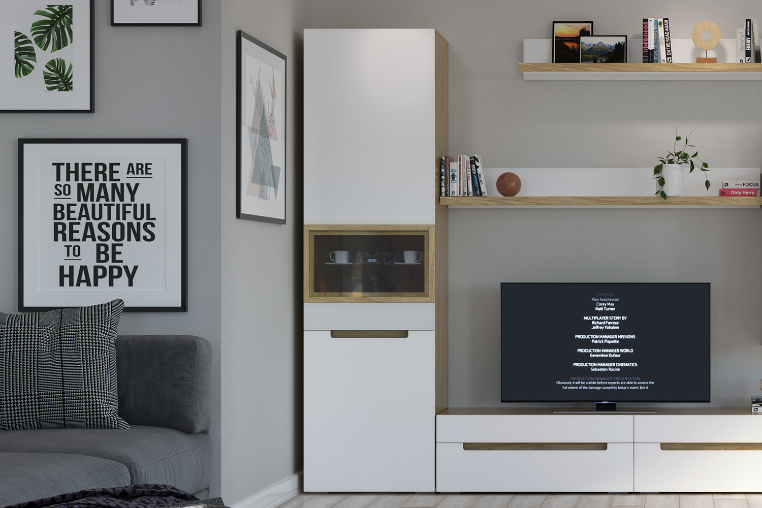 – описание: размер 213.2x60.1x41.6 см, стиль современный, минимализм, цвет швейцарский вяз, белый, назначение для гостиной.