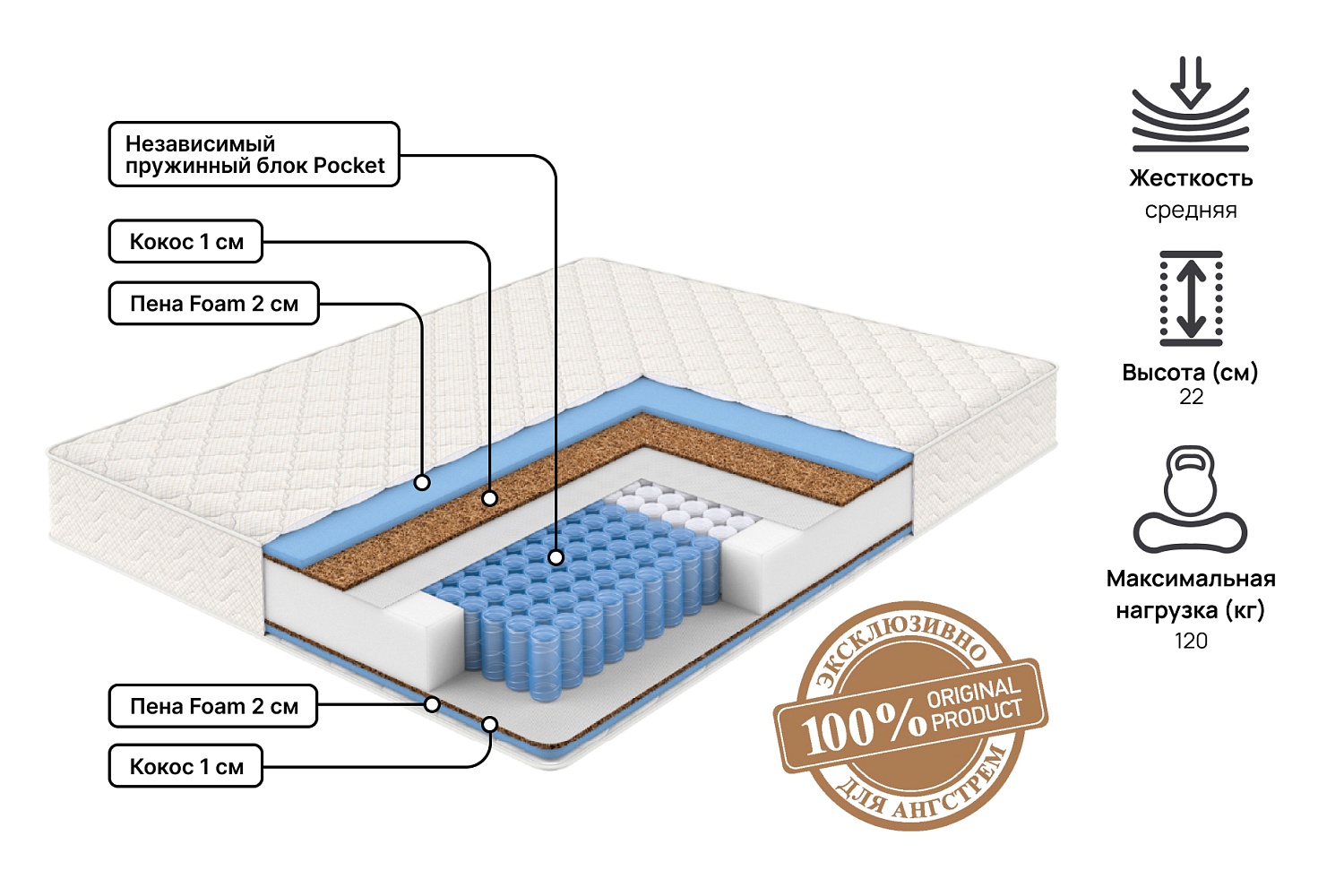 Купить Матрас Smart 160 х 200 в интернет-магазине мебели «Ангстрем»