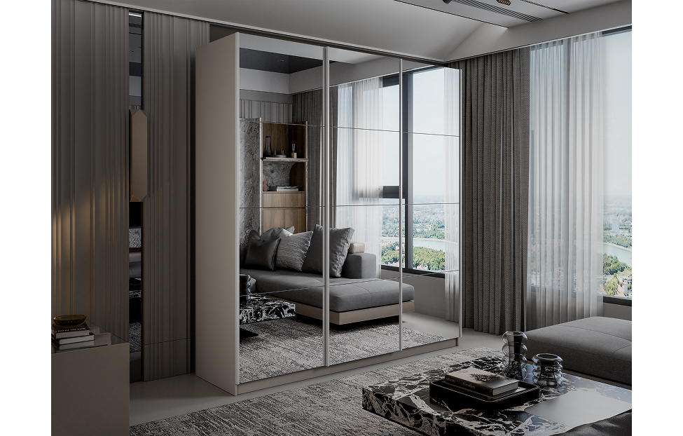 Купить Шкаф-купе Lux 180х230х57 фасады зеркало / Кашемир в интернет-магазине мебели «Ангстрем»